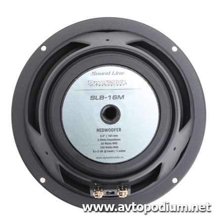Dynamic State SLB-16.2 2-х полосная компонентная акустика 16,5см (6,5"), комплект. RMS/max 50/100 Вт, 4Ом, 60Hz - 20kHz, 91±2 dB @ 1 watt/1 meter. Материал диффузора мидвуфера: Целлюлоза. Диаметр звуковой катушки 25,9 мм. Магнит ферритовый. Стальная корзина. Монтажная глубина/диаметр 63/144мм. Универсальный твитер с шёлковым куполом 28мм, диаметр звуковой катушки 20,4 мм, магнит неодимовый. Монтажная глубина/диаметр твитера 20/44мм. Комплект различных видов адаптеров для монтажа твитеров. ВЧ фильтр первого порядка. Без грилей в комплекте.